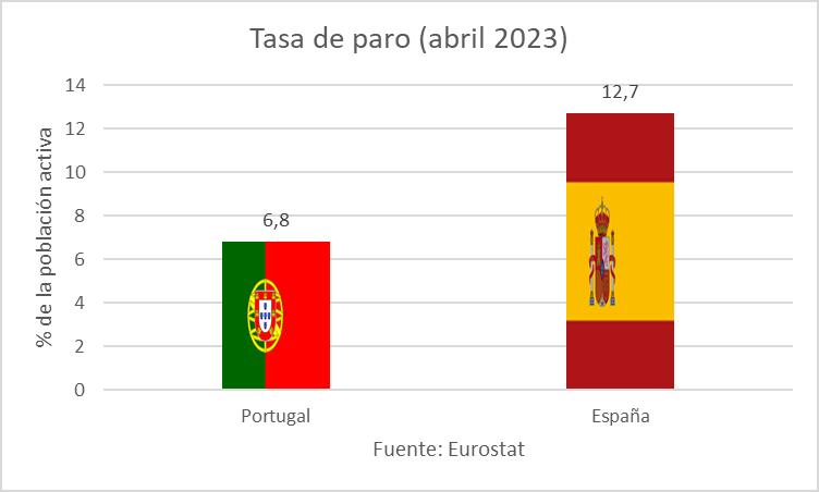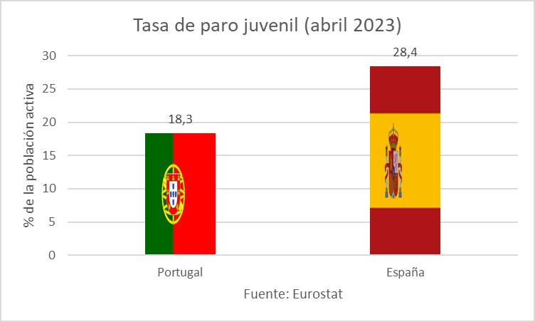 En cuanto al paro juvenil, Portugal tiene diez puntos menos España: 18,3% frente al 28,4%, respectivamente.