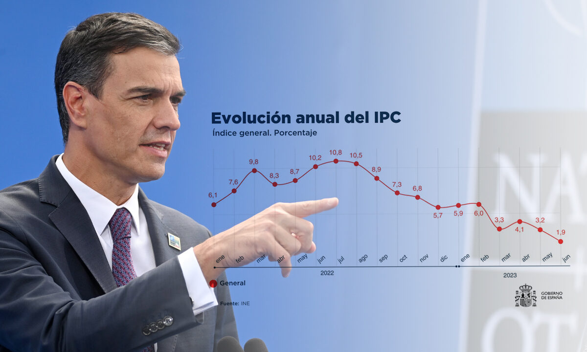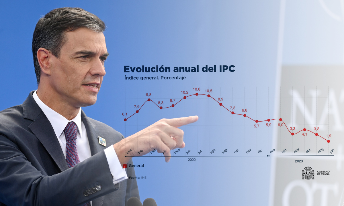 El presidente del Ejecutivo, Pedro Sánchez se mostraba pletórico por un dato menor que el de mayo al que calificaba como "éxito de país". Que la inflación siga subiendo un 1,9% es "un éxito de país que mejora la competitividad de empresas y el poder adquisitivo de los salarios. Frente a bulos y mentiras, hechos y datos" celebraba Sánchez.