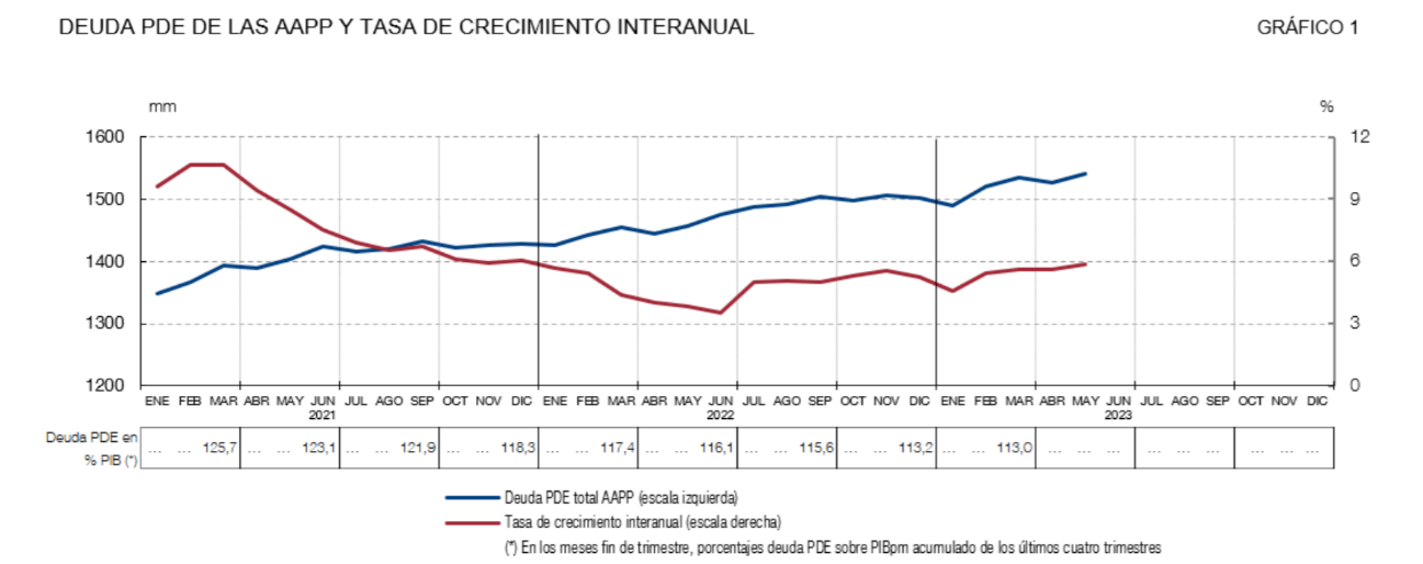 Y esa es la razón por la cual la deuda pública del país se ha disparado en otros 318.000 millones de euros durante este período. España cerró 2019 con una deuda de 1,22 billones y ahora, cuatro años después, esta cifra ronda los 1,54 billones, un nuevo máximo histórico, equivalente al 113% del PIB nacional. Esta es la factura fiscal de impuestos futuros.
