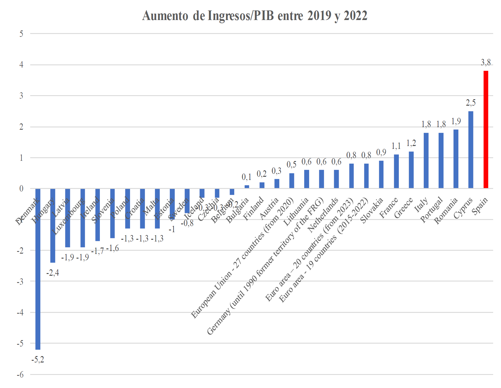 Así pues, el balance presupuestario de Sánchez se resume, hasta el momento, en el mayor aumento de la presión fiscal, del gasto público y de la deuda de toda Europa.