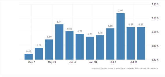 La cuestión es que, con estos tipos oficiales, el tipo de interés medio de las hipotecas más frecuentes, la de tipo fijo a 30 años, supera el 7%, mientras que el promedio a 15 años ronda el 6,5%, su nivel más alto en 20 años.