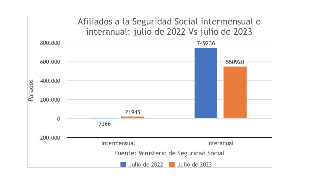 De hecho, en términos interanuales se desacelera de manera importante, reduciéndose en más de un 25% el crecimiento interanual de afiliados sobre la cifra del mismo período del año anterior.