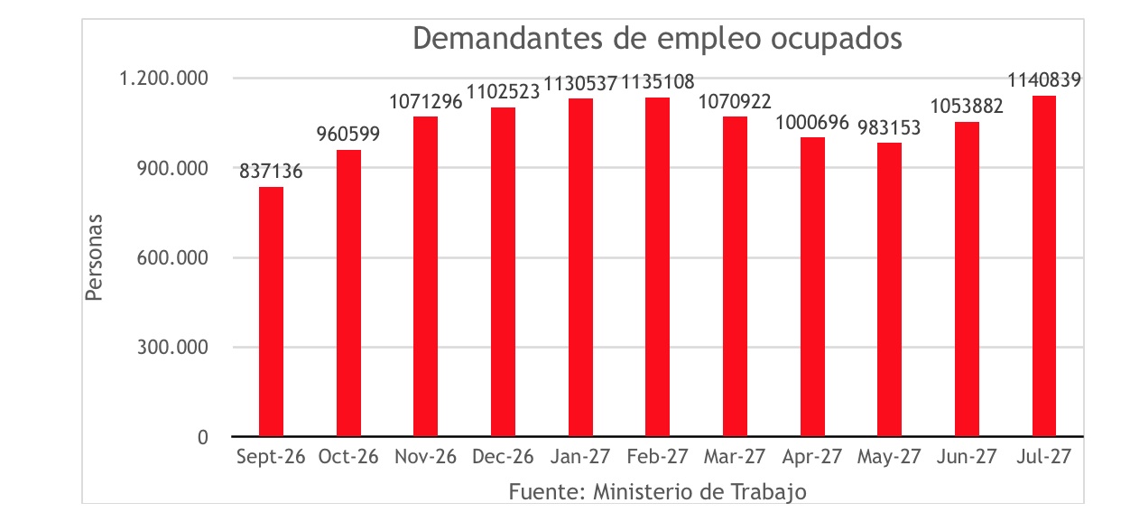 Los demandantes de empleo ocupados, donde se encuadran los indefinidos fijos-discontinuos que cesan actividad, aumenta en 86.957 personas en julio, que muestra que realmente hay al menos ese número de personas que probablemente tenía un empleo temporal y que se encontraría incluido en el número de parados de no haber sido reconvertido en fijo-discontinuo debido al cambio normativo que se llevó a cabo. Esto es especialmente preocupante, pues se produce en una época de alta contratación, con lo que esa potencial destrucción de empleo -con reflejo en menor afiliados- que muestra ese aumento de demandantes de empleo indica la desaceleración de la economía.