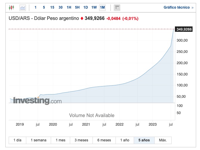 Otro flanco de ataque a Milei ha sido el de la caída del peso, que se ha desplomado haciendo que el banco central argentino suba los tipos de interés más de 20 puntos hasta el 118%. El cambio real está a 350 pesos por dólar.