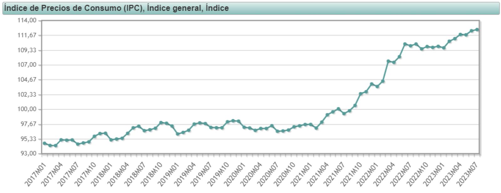 Si comprobamos la evolución del índice general de precios del INE, apreciaremos que en julio, desde el mismo mes del año 2019 (último mes de julio anterior a la pandemia), el incremento de los precios fue del 16%.