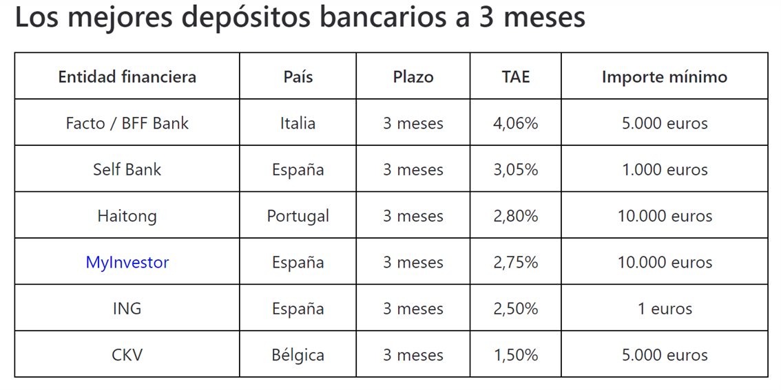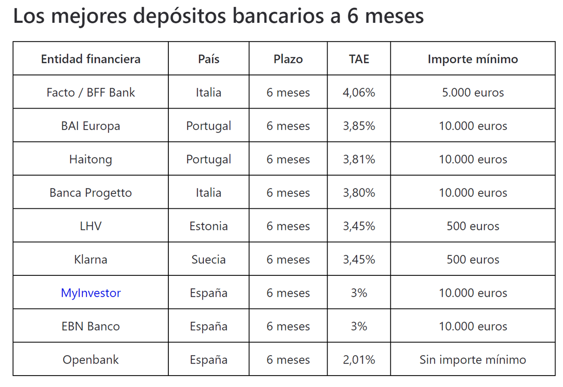 Rankia, por su parte, incluye en su análisis los mejores depósitos a plazo fijo que ofrece o bien la banca española o bien entidades con sucursal en España.