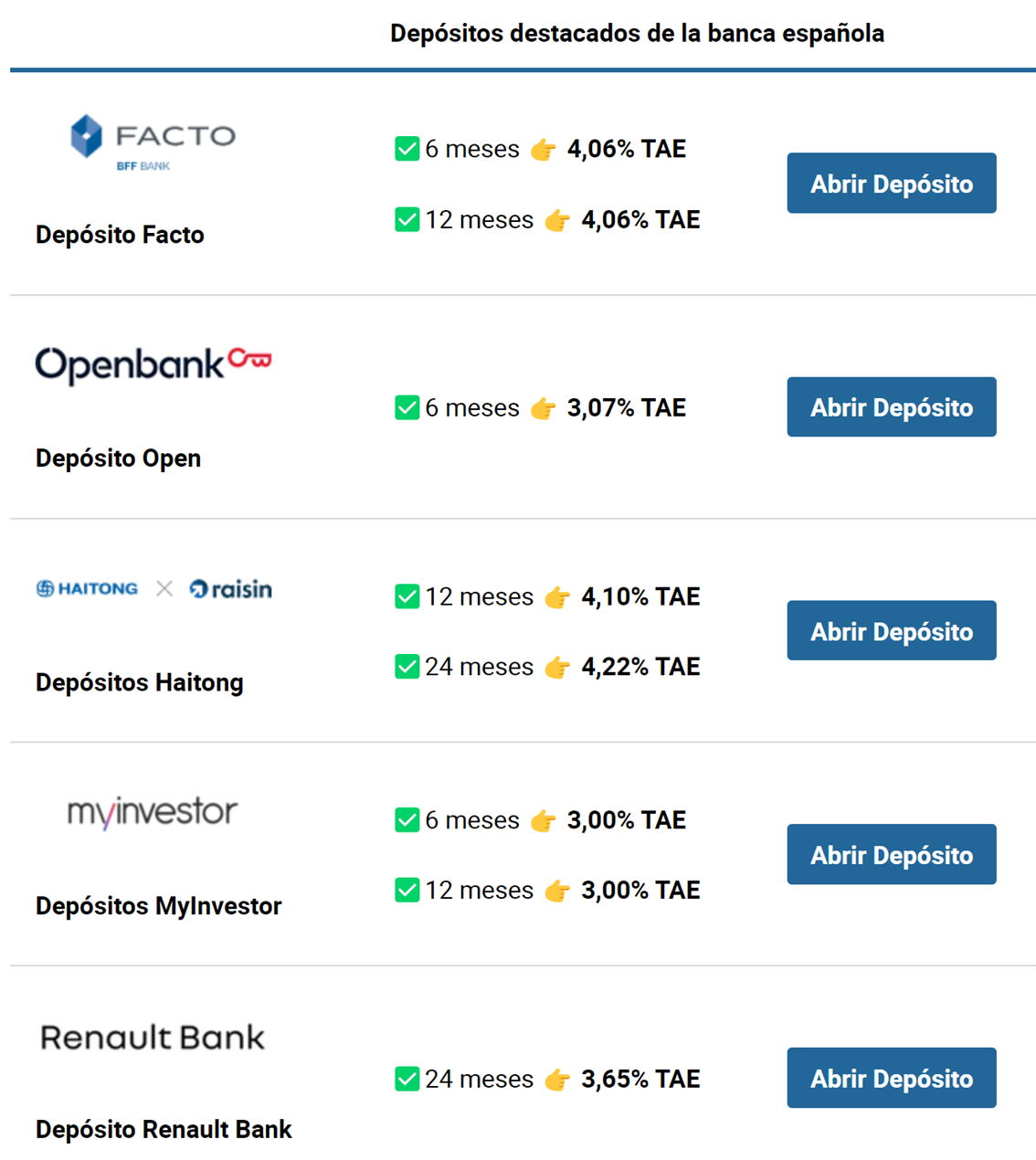 Mejores depósitos españoles