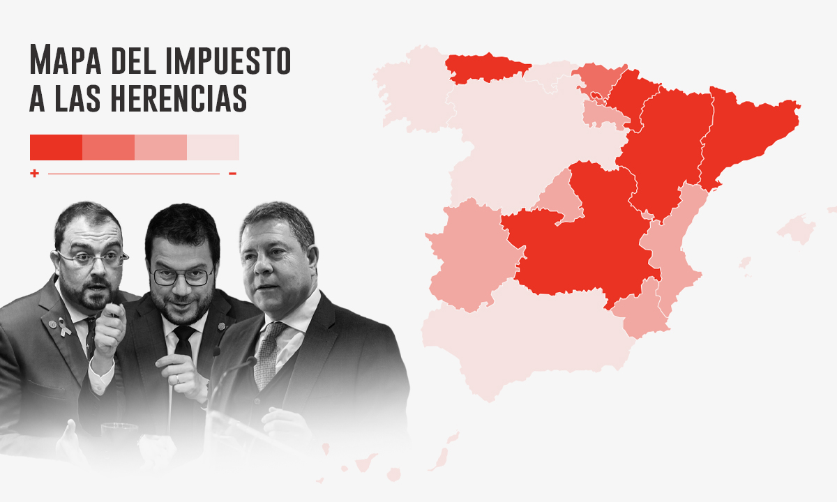 La derecha fulmina el Impuesto de Sucesiones en España. Baleares, Canarias, la Comunidad Valenciana y La Rioja han sido los últimos territorios en aprobar el fin del impuesto a la muerte después de que los resultados de las elecciones autonómicas del pasado 28 de mayo hayan propiciado el cambio político de sus gobiernos. Los Ejecutivos regionales que han llevado a cabo esta ofensiva de alivio fiscal al ciudadano están formados en su mayoría por el PP o por PP y Vox. Aragón (PP y Vox) también ha anunciado que eliminará paulatinamente la fiscalidad la herencias, aunque todavía no lo ha formalizado su consejo de Gobierno.