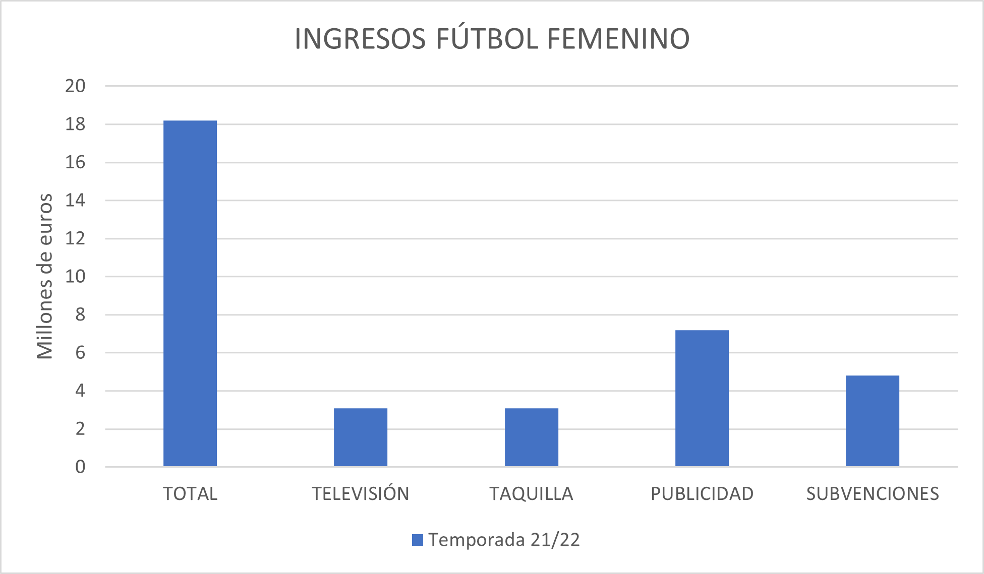 Por el contrario, el fútbol femenino es, hoy por hoy, una máquina de perder dinero. Los clubes de Primera División generaron unos ingresos de 18,2 millones de euros en la temporada 21/22: