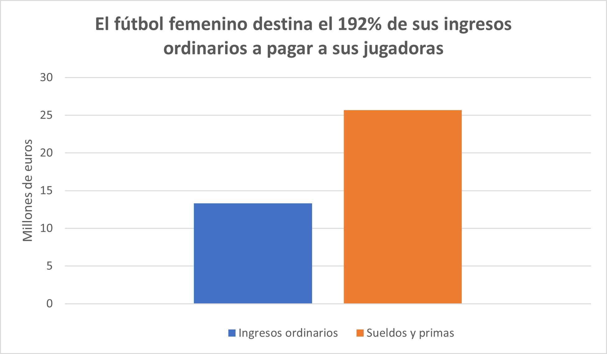 ¿Y cuánto dinero destinaron a sus jugadores? 25,7 millones de euros. Así pues, descontando las subvenciones, el fútbol profesional femenino de Primera División destinó el 192% de sus ingresos ordinarios a pagar a sus jugadoras.
