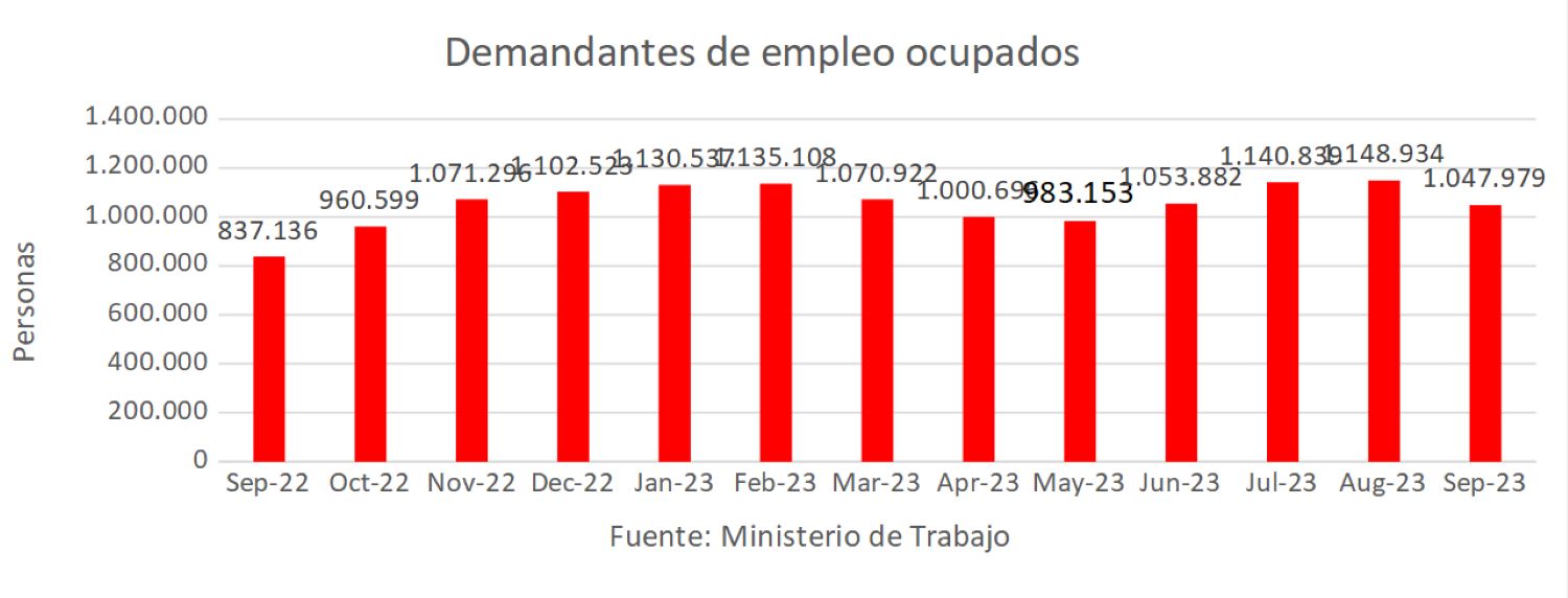 Los demandantes de empleo ocupados, donde se encuadran los indefinidos fijos-discontinuos que cesan actividad, disminuye, pero sigue siendo de 1.047.979 personas en septiembre, que muestra que realmente la mayoría de personas probablemente tenía un empleo temporal y se encontraría incluido en el número de parados de no haber sido reconvertido en fijo-discontinuo debido al cambio normativo que se llevó a cabo.