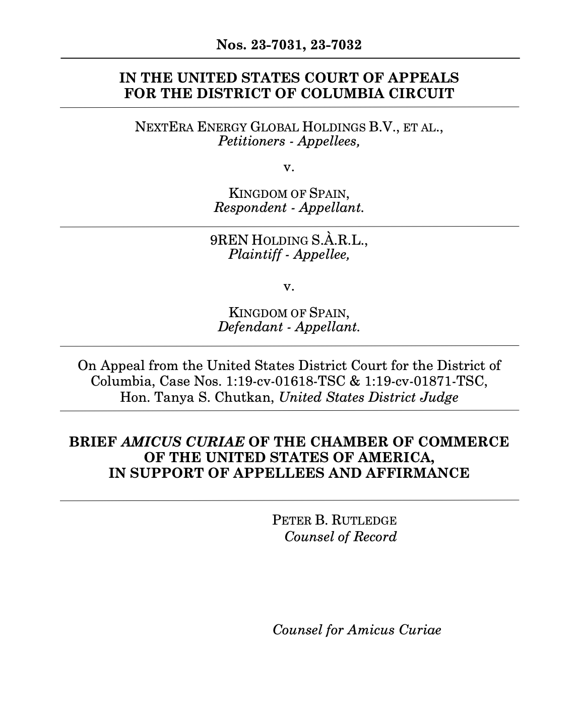 Libre Mercado ha tenido acceso al escrito presentado ante la Corte del Distrito de Columbia por parte de la Cámara de Comercio de Estados Unidos para pedir a la magistratura del país norteamericano que tome medidas para resarcir a las empresas NextEra y 9REN por los impagos en los que está incurriendo el gobierno de España para no cumplir las sentencias que obligan a compensar a las compañías afectadas por la retirada retroactiva de las primas renovables.