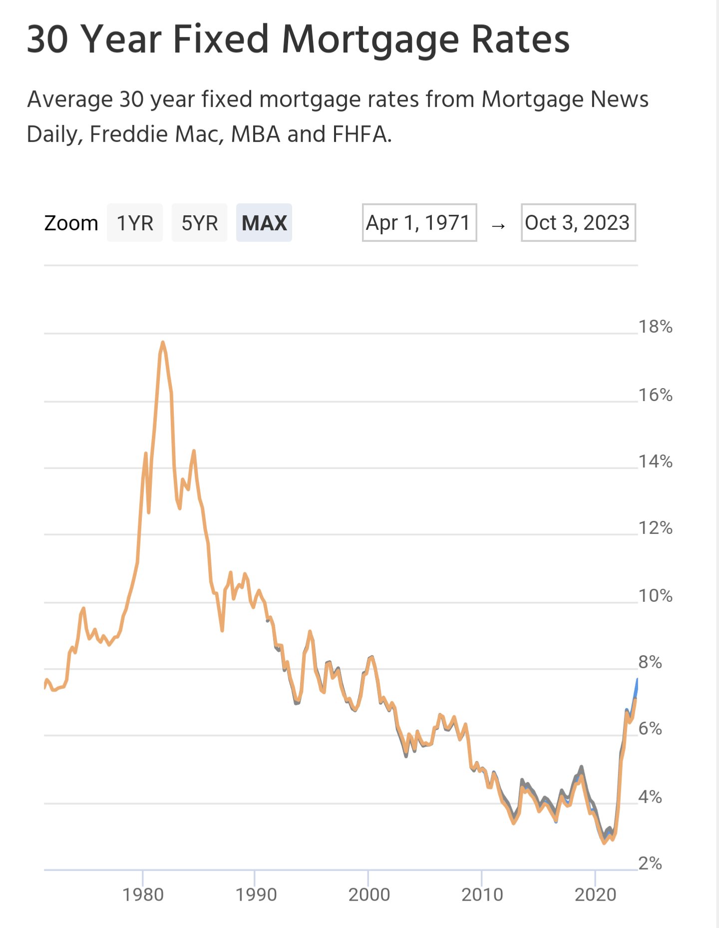 Y prueba de ellos es que el tipo de interés medio de las hipotecas a tipo fijo en EEUU acaba de alcanzar el 8% a 30 años, su nivel más alto desde el año 2000.