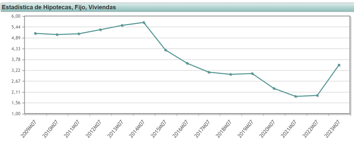 Por su parte, el tipo de interés medio inicial de las hipotecas a tipo fijo se sitúa ya en el 3,5%, frente al 1,9% de hace apenas un año. Sin embargo, dado que muchas están bonificadas, lo normal en la actualidad es encontrarse con tipos superiores al 5% a plazos de 25 o menos años.