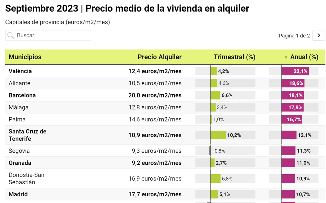 Menos oferta y más demanda se traduce, sí o sí, en precios más altos. El alquiler medio en Barcelona ya ha alcanzado los 20 euros por metro cuadrado al mes, tras subir un 18% en el último año, según los últimos datos de Idealista, del pasado mes de septiembre. Es la tercera mayor subida de precios de España, tras Valencia y Alicante. Y desde el cierre de 2015, año en el que Colau llega a la Alcaldía, el alquiler medio ha subido más de un 50% en la Ciudad Condal.
