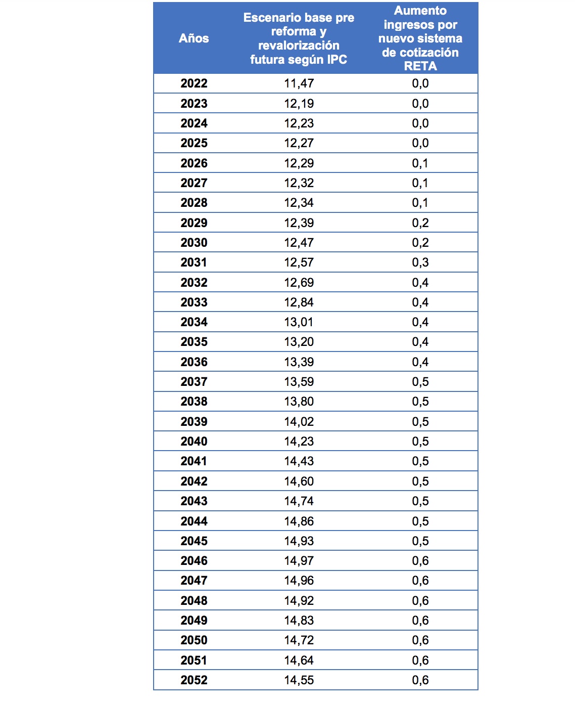 Sin embargo, esta afirmación contradice al nuevo documento de Escrivá, que prevé empezar a "aumentar los ingresos por nuevo sistema de cotización RETA" en 2026 e ir aumentando esos ingresos cada año. El Gobierno ya le prometió a Bruselas ampliar los ingresos con el nuevo sistema de cotización de los autónomos en el Plan de recuperación, transformación y resiliencia, lo que generó una gran polémica porque en un inicio negaron que la intención del cambio en el RETA fuera recaudar más (resultaba extraño que un gobierno diera la vuelta al sistema de cotización de los autónomos para seguir recaudando lo mismo).