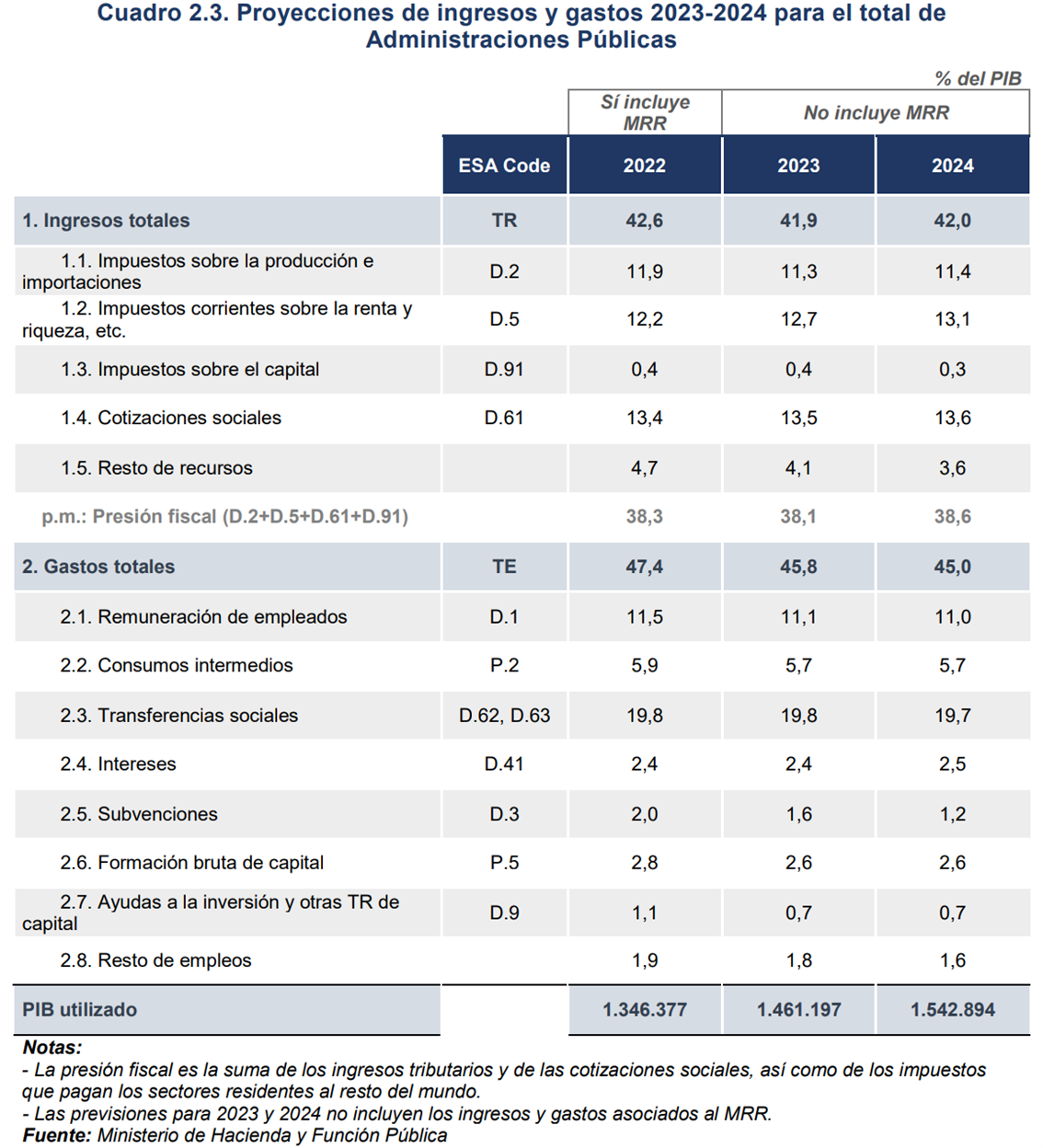 No es de extrañar, por tanto, que la presión fiscal, que es la suma de los ingresos tributarios y de las cotizaciones sociales, suba en casi 40.000 millones de euros en 2024, al elevarse del 38,1% del PIB en 2023 al 38,6% en 2024, según recoge el citado documento.