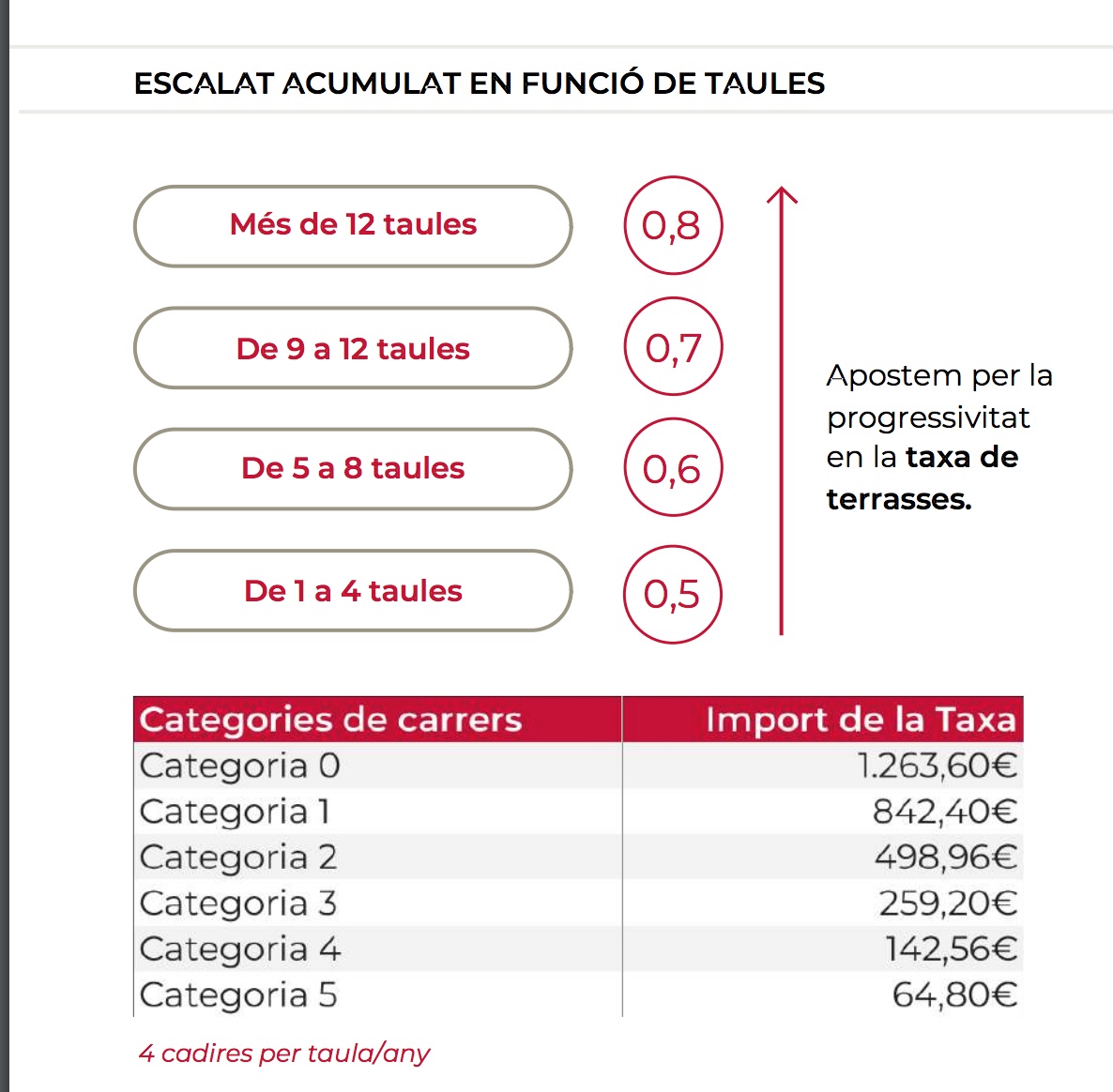 Las críticas a Collboni han sido tal, que el socialista ha decidido cambiar los tramos y los coeficientes inicialmente previstos. Así, los tramos van cada cinco mesas y no cada cuatro como se había previsto, y el coeficiente que se aplica empieza en un 0,40 y se va incrementando tramo a tramo hasta 0,80.