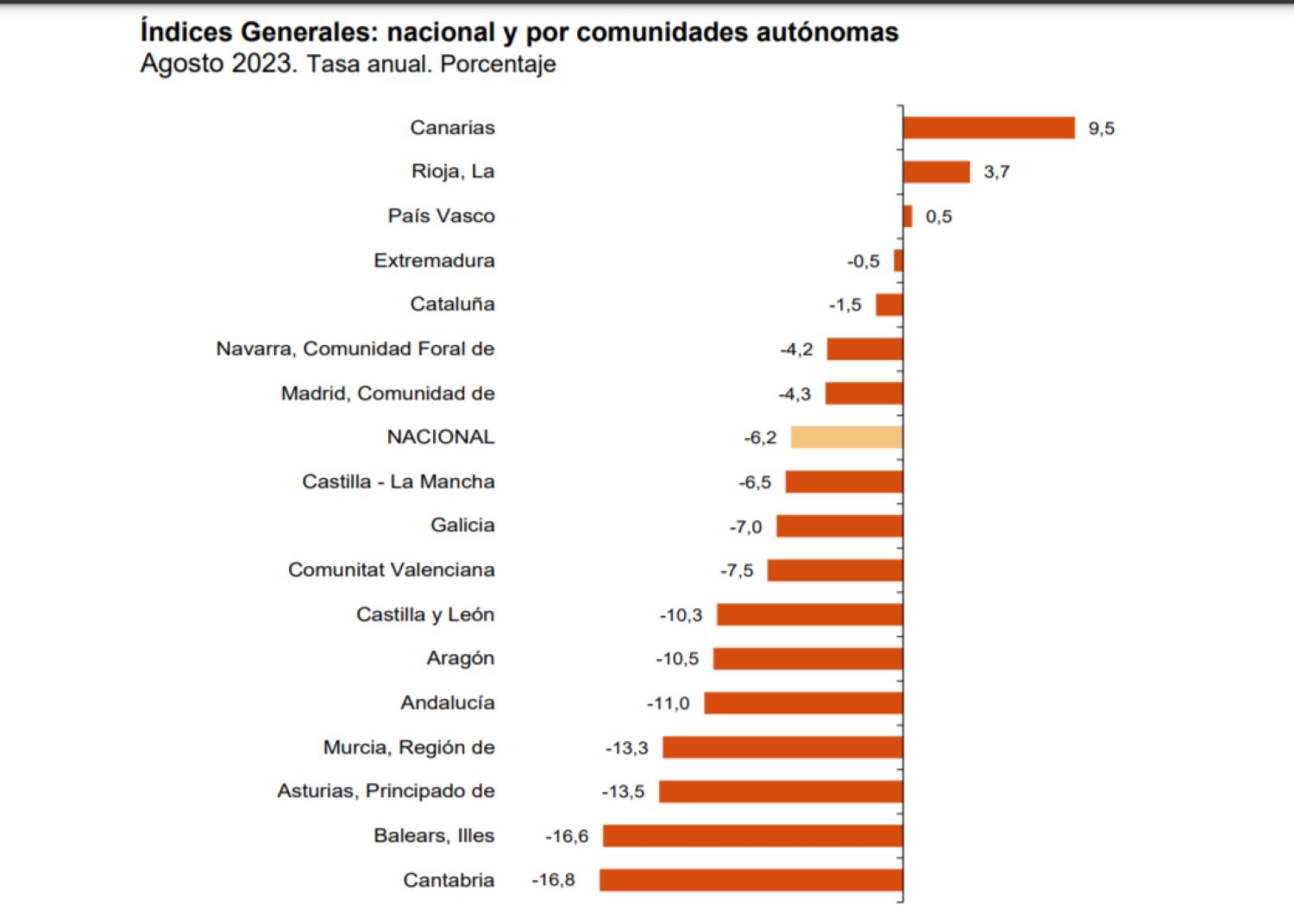 Finalmente, como vemos, la cifra de negocios de la industria solamente aumentó en tres comunidades autónomas: Canarias (9,5%), La Rioja (3,7%) y País Vasco (0,5%). Por su parte, Cantabria, Baleares y Asturias sufrieron los descensos más pronunciados, con tasas negativas del 16,8%, el 16,6% y el 13,5%, respectivamente.
