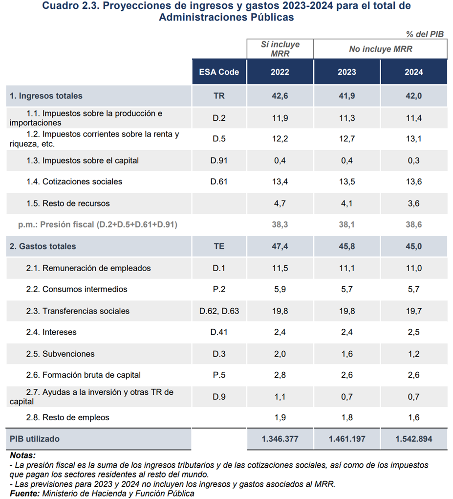 El Plan Presupuestario de 2024 que el Gobierno acaba de remitir a Bruselas incluye una previsión de ingresos de 648.000 millones de euros, equivalente al 42% del PIB. Este es el volumen total de fondos que prevé recaudar el conjunto del sector público durante el próximo ejercicio, incluyendo impuestos, cotizaciones y tasas, entre otros recursos.