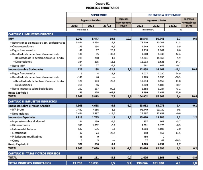 Sin embargo, desde Hacienda el mensaje que se ha dado este mes de septiembre es eufórico: "Los ingresos homogéneos por el IRPF hasta septiembre crecen un 9,6%", dice el último informe publicado por el organismo encargado de recaudar impuestos. Pero no se queda ahí: "El incremento de los ingresos está siendo intenso", dice el propio informe y añade que "el principal componente del impuesto, el que impulsa la recaudación de esta figura y del conjunto de la recaudación, son las retenciones sobre los rendimientos del trabajo y de las actividades económicas".