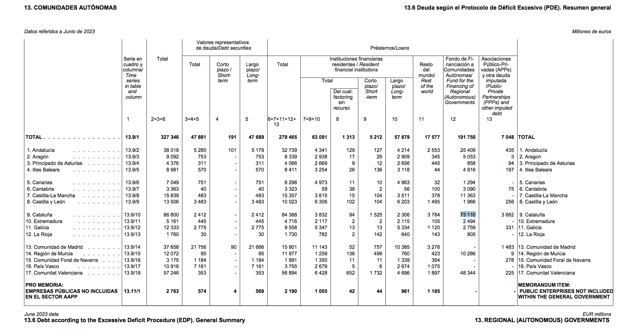 De momento, ese perdón de Sánchez al pasivo catalán con cargo al Estado representa casi al 20% de toda la deuda que Cataluña tiene con el famoso Fondo de Liquidez Autonómica (FLA). Así, estamos hablando de un total 73.110 millones de euros que Cataluña debe a este instrumento ideado por Cristóbal Montoro en 2012 para facilitar el endeudamiento de las autonomías a través del Estado. O dicho de otra forma, para evitar que quebraran.