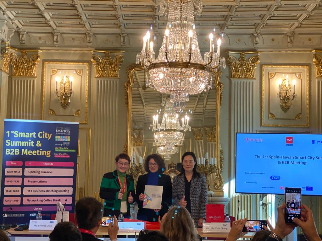 En el acto de apertura del I Foro y Encuentro Empresarial Smart City España-Taiwán han estado presentes la embajadora de la oficina Económica y Cultural de Taipei en España, Vivia Chang, y la Secretaria General Adjunta de Taiwán Smart City, Cynthia Chen.