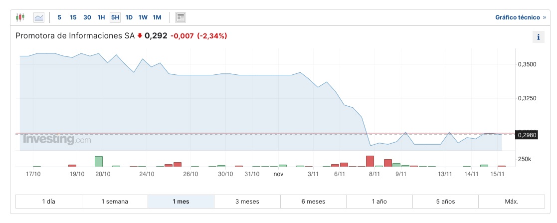 La inyección de Oughourlian, a falta de mejor inversor, o compañía que confíe en el futuro financiero y económico del Grupo editor de El País y la Ser, actúa como gotero que mantiene con un hilo de vida a una compañía hundida en bolsa. El hecho de que Oughoulian no haya conseguido ningún inversor que trate de mejorar la maltrecha situación financiera de la empresa, ha hecho que la acción de Prisa pierda la ya baja cifra de los 30 céntimos por acción. Es decir, que con los dos euros que cuesta cada ejemplar del diario El País podemos comprar 6 acciones y no sobraría dinero.