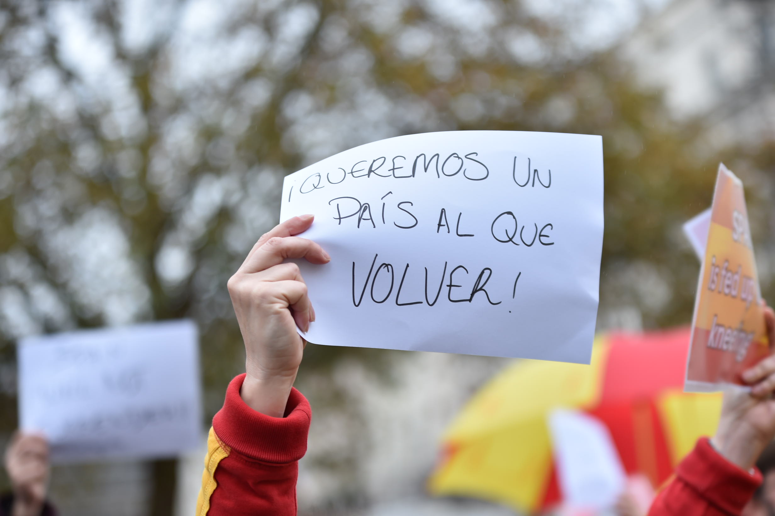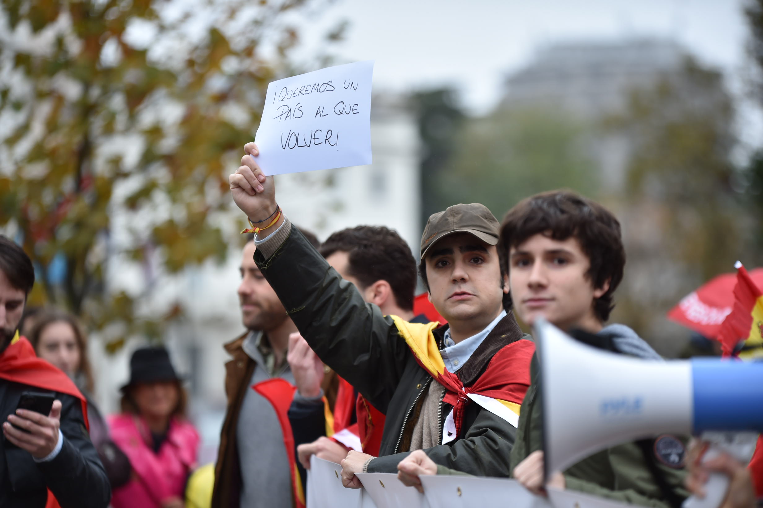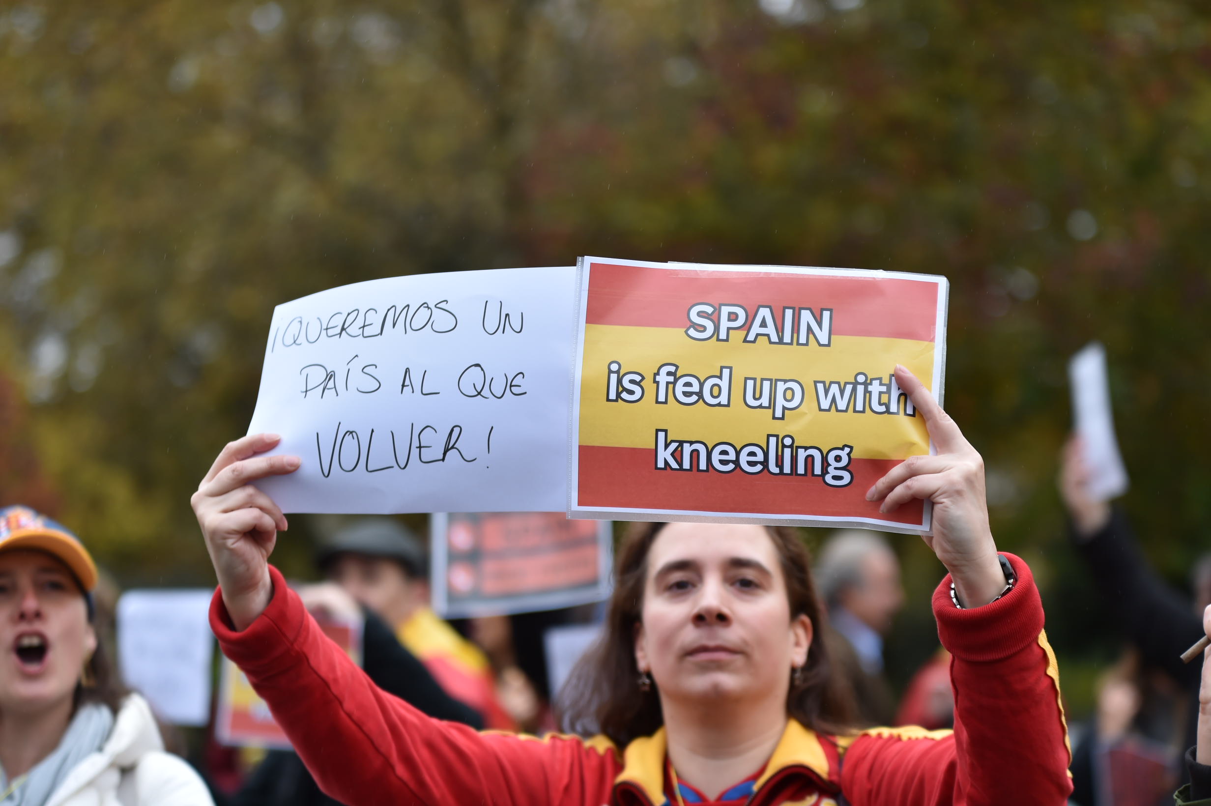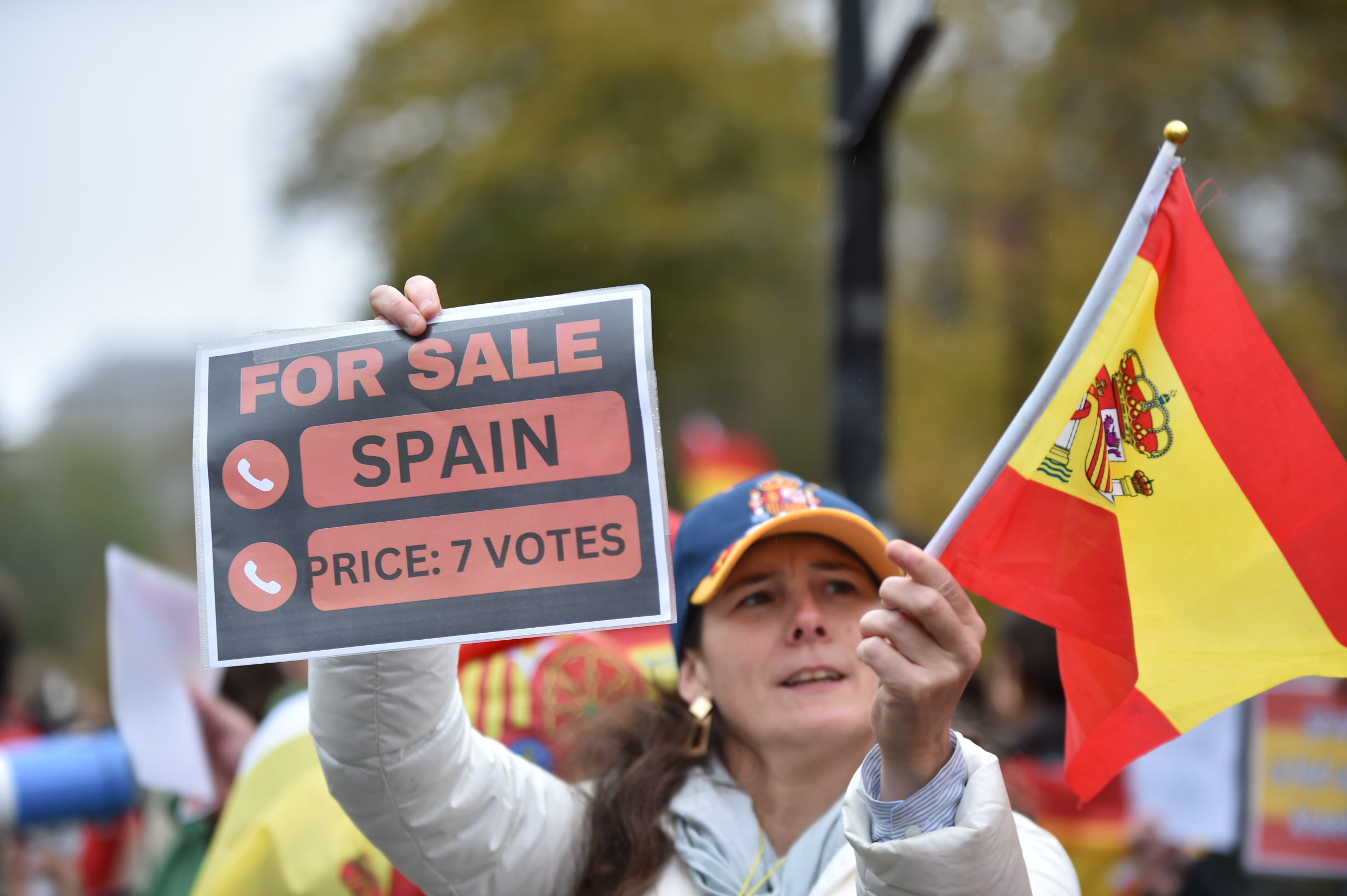 Medio millar de personas se dan cita en la capital inglesa para mostrar su rechazo a los pactos de Sánchez con el separatismo.