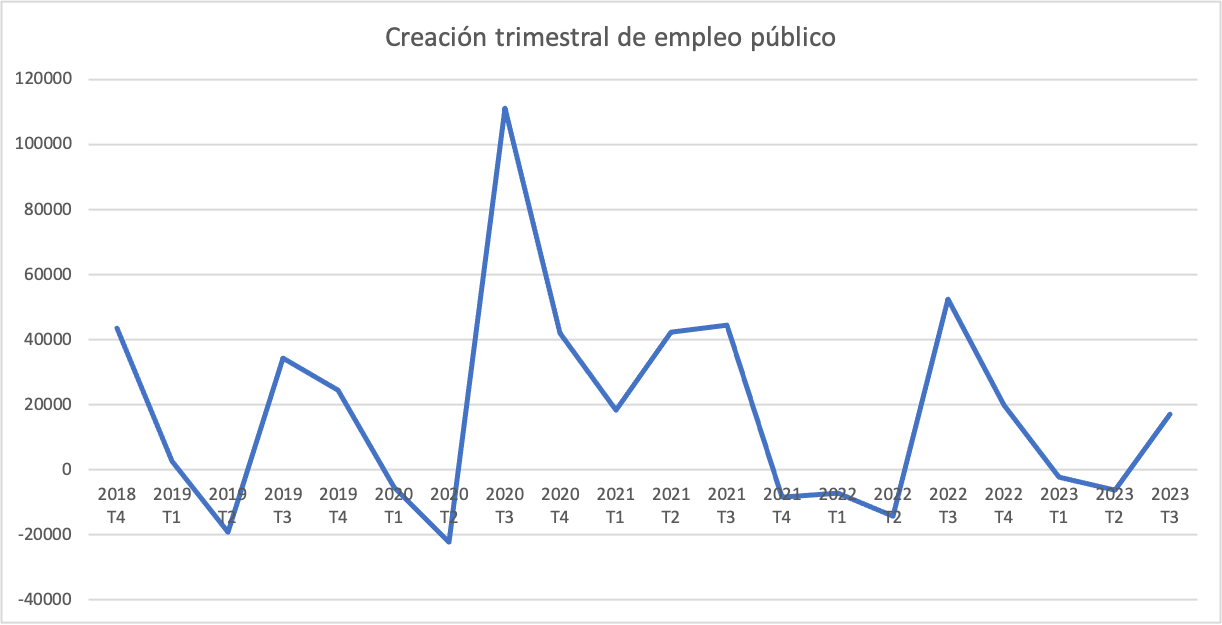 - Así las cosas, si depuramos el dato para descartar el maquillaje estadístico de los fijos discontinuos, encontramos que el 50% del empleo creado es público.