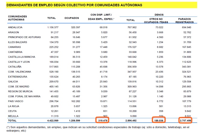 El dato lo desconocemos, sin embargo, sí sabemos que se incluyen dentro del apartado "Demandantes de Empleo Ocupados". Este apartado ha crecido en diciembre respecto a noviembre en casi 40.000 personas hasta los 1.206.599 personas, sin embargo, es imposible saber dentro de esa cifra cuáles son fijos discontinuos en inactividad, o personas que están inscritas en el antiguo INEM para encontrar un trabajo mejor que el que tienen. Es posible que se trate de personas que ostentan algún "subempleo". Empleos por horas o empleos de baja remuneración y estén buscando más trabajos para completar su sueldo. Cuirosamente Eurostat hace referencia a que en España hay más de un millón de personas en situación de "subempleo".