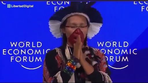 Tras realizar unas invocaciones, mientras frotaba sus manos, la representante indígena sopló sobre la cabeza de cada uno de los participantes entre los que se encontraban la directora gerente del Fondo Monetario Internacional (FMI), Kristalina Georgieva; el presidente del Banco Mundial, Ajay Banga, el director ejecutivo de IKEA, Jesper Brodin y el multimillonario André Hoffmann.