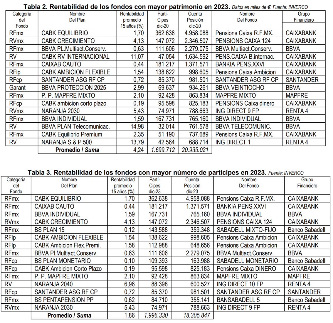 Por otro lado, el informe destaca que los fondos con mayor rentabilidad no son, precisamente, los de mayor patrimonio o más partícipes. Así, los 15 fondos con mayor patrimonio del sistema individual tenían 20.935 millones de euros y la media de sus rentabilidades fue del 4,24%, mientras que los 15 fondos con mayor número de partícipes registraron una rentabilidad media del 1,86%.