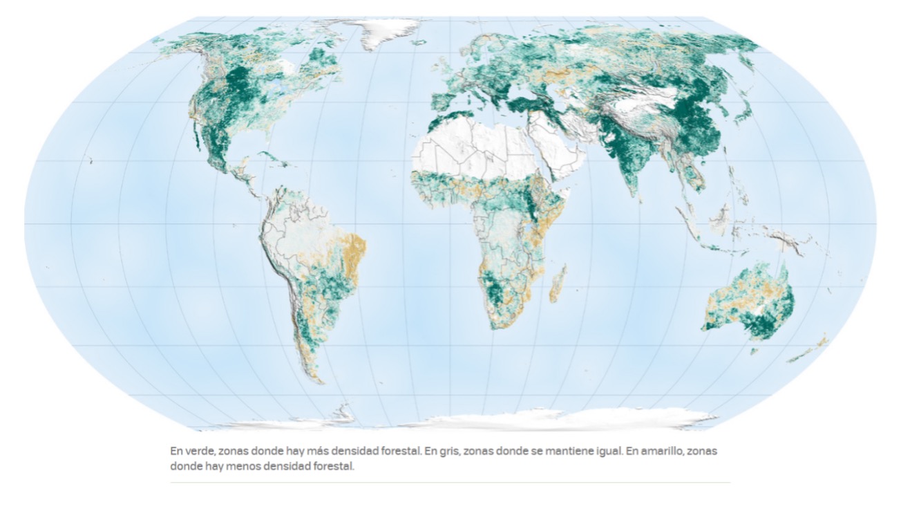 Así es, y es que, desde principios de la década de 1980 hasta la actualidad la masa forestal en todo el planeta ha aumentado un 7,1%, habiéndose producido una ganancia en unas zonas y una pérdida en otras. Esto es lo que se desprende del estudio "Global land change from 1982 to 2016" del año 2018, donde se observa el cambio producido en el suelo en todo el planeta. No obstante, la mayoría de los cambios producidos se deben a la actividad humana (60%), a través de la reforestación o el mejor cuidado en unos lugares y también a través de los incendios provocados adrede o por negligencias. El 40% restante se debe a cuestiones relacionadas con el cambio climático.