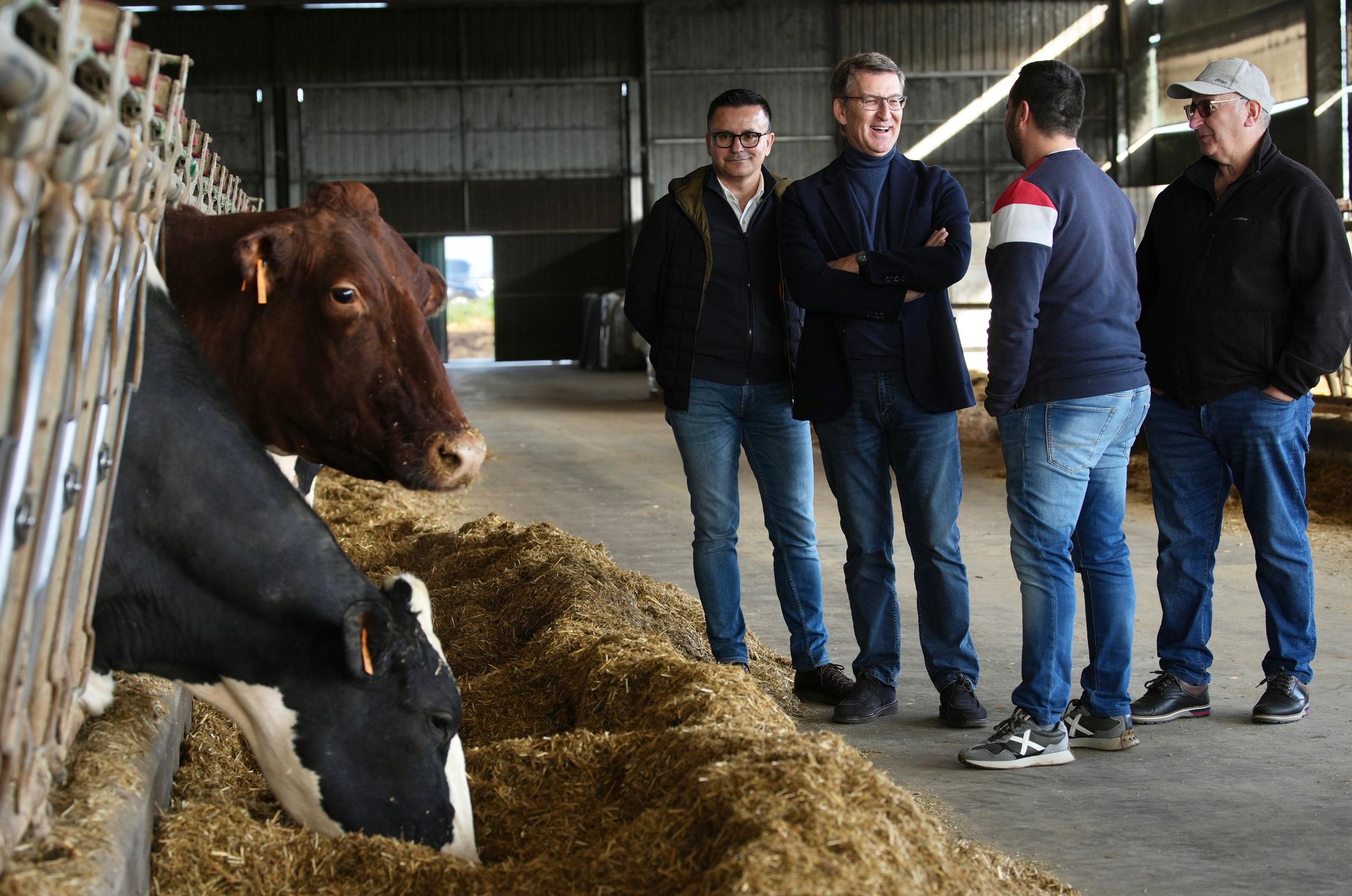 Rodeado de vacas y tractores, en plena campaña de las elecciones gallegas, Alberto Núñez Feijóo ha anunciado este lunes que las Comunidades Autónomas gobernadas por el Partido Popular preparan un "plan de choque en favor de la agricultura y la ganadería como sectores estratégicos".