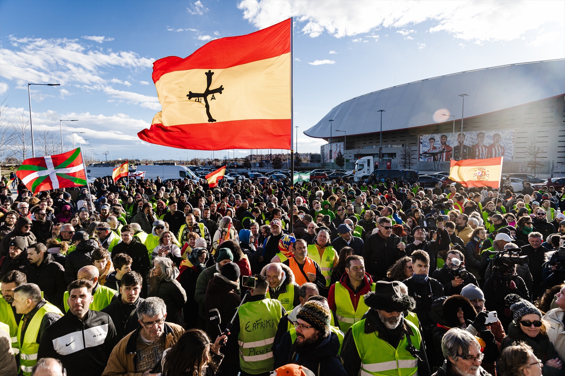 En un concentración en los alrededores del estadio Metropolitano de Madrid —que ha comenzado con unas 200 personas y a la que se han ido sumando más agricultores y transportistas con chalecos amarillos— se ha ratificado esta decisión avanzada esta pasada semana y a la espera de que el Gobierno escuche sus reivindicaciones.