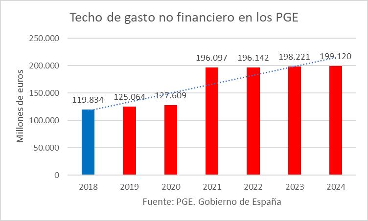 El gasto público se encuentra disparado, con un incremento acelerado que impulsa el desequilibrio presupuestario, con casi 80.000 millones de euros de incremento en el gasto no financiero de los Presupuestos Generales del Estado desde que Sánchez es presidente.