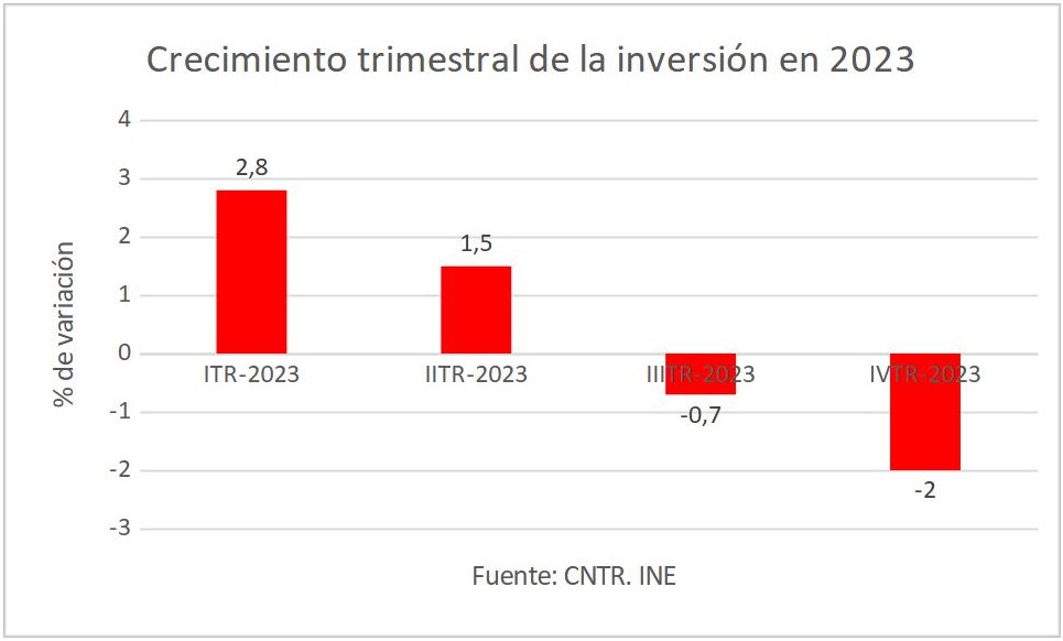En cuanto a la inversión, también se nota el empeoramiento de expectativas, pues el retroceso que se da es claro, con un empeoramiento de casi cinco puntos trimestrales entre el comienzo y el final del año.