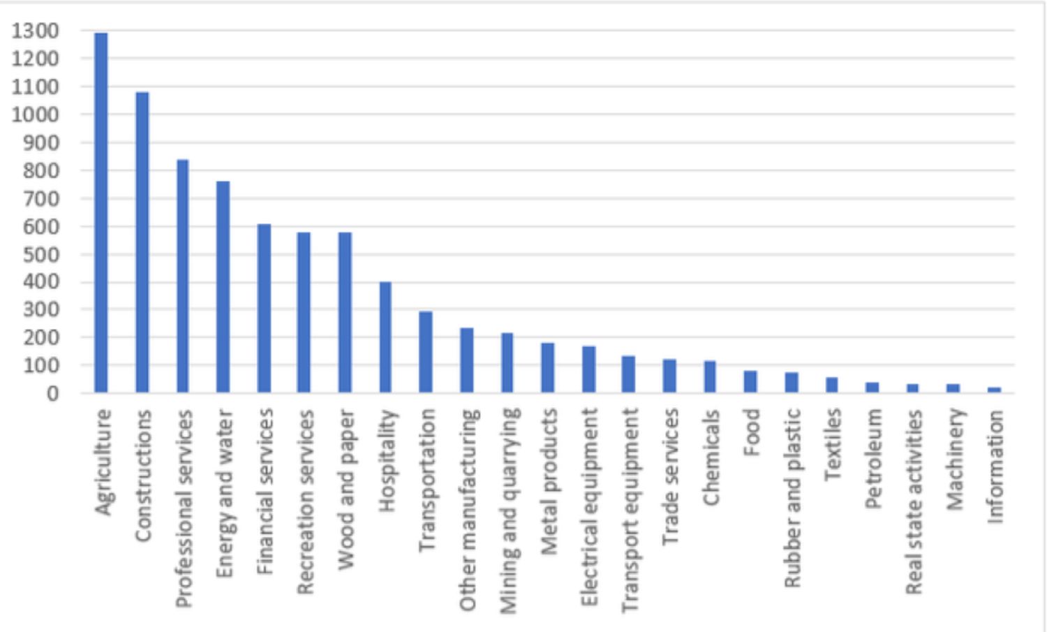 En este sentido, cabe destacar el nivel de presión regulatoria al que se enfrenta el sector agrícola, que es una de las principales reivindicaciones que se están haciendo en las protestas protagonizadas por los trabajadores del campo durante los últimos días. En concreto, como podemos comprobar a continuación, de media la cantidad de regulaciones que soporta este sector alcanza las 1.300 cada año. De este modo, le siguen la construcción con cerca de 1.100 regulaciones anuales y los servicios profesionales con más de 800.