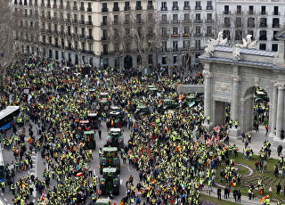 Los agricultores y ganaderos españoles llevan varias semanas de protestas cortando carreteras con tractoradas y el miércoles de esta semana llegaron a Madrid con una protesta en el centro de la capital de España. Los trabajadores del sector primario español han calcado a sus homólogos alemanes y franceses que han conseguido que la UE recule en algunas de sus imposiciones como el uso de pesticidas.