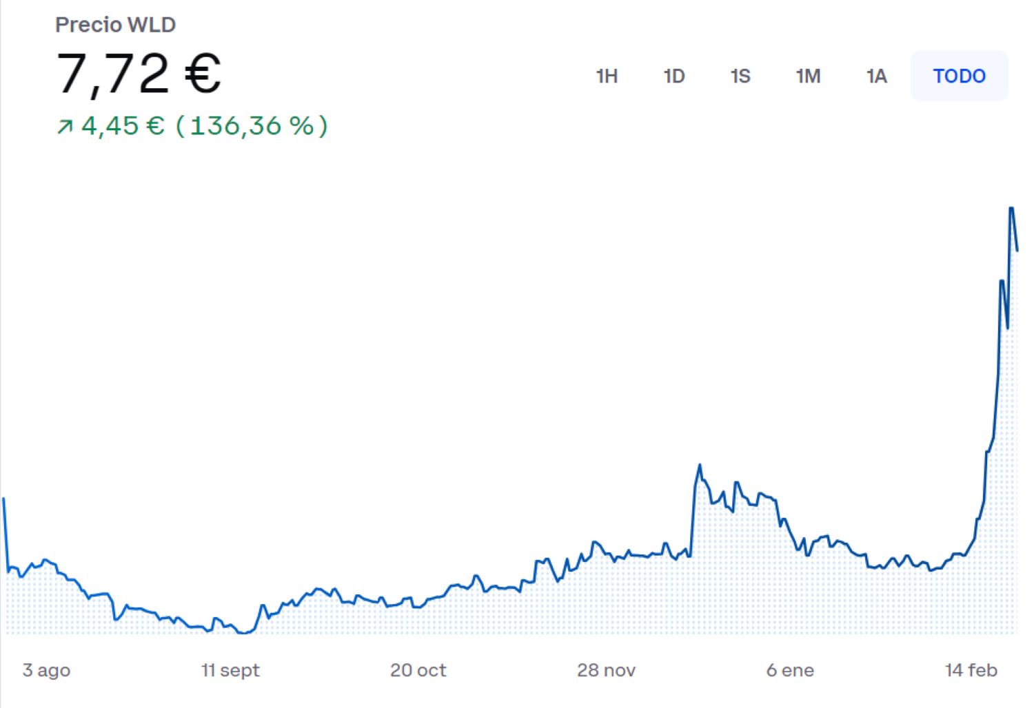 Del mismo modo, desde que hace más de medio año saliera al mercado esta criptomoneda, ya existen usuarios en 120 países. Esto explica que hasta el 23 de febrero de 2024, la valoración de este activo haya experimentado un notable crecimiento desde su lanzamiento. Así, supera ya los 7,5 euros por unidad, habiendo aumentado su valor más de un 130% desde el 24 de julio (cuando cotizaba en torno a los 3,24 euros).