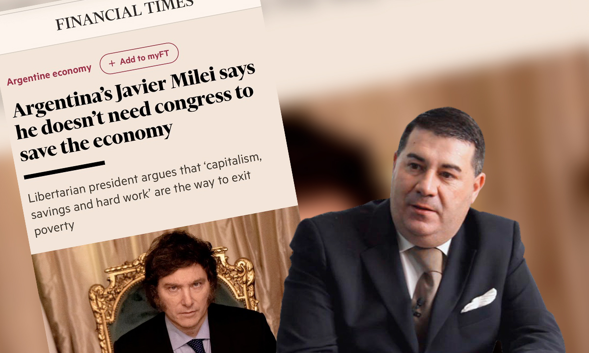 Este jueves, el diario económico Financial Times, uno de los más importantes del mundo, dedica un artículo al presidente Milei en el que han podido conversar con el economista y hacer balance de estos primeros meses de Gobierno. De este modo, el diario no duda en detallar que Milei "está dispuesto a pasar por alto a los legisladores hostiles que bloquearon sus históricas reformas económicas y depende de decretos y otros poderes ejecutivos para implementar su radical plan de austeridad".