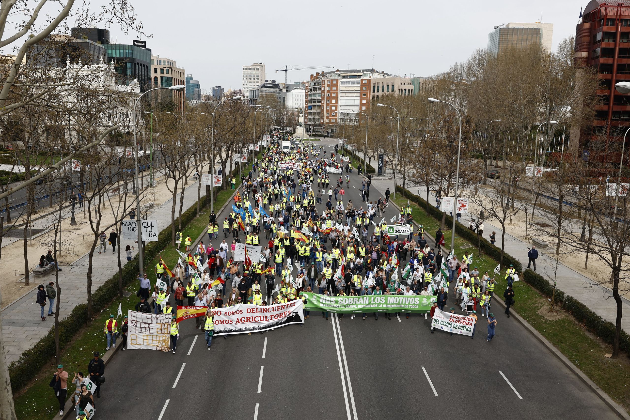 Es la tercera manifestación en Madrid del sector agrario de la actual oleada de movilizaciones que iniciaron los agricultores y los ganaderos en España hace seis semanas, que también mantienen los productores de otros países de la Unión Europea para pedir reformas de la Política Agraria Común y precios justos por sus producciones.