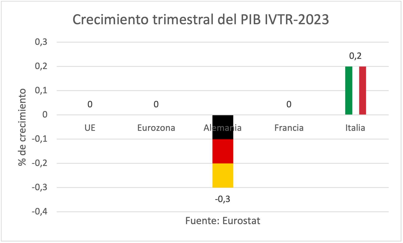 De esa forma, con un crecimiento del 0% trimestral en todo el año 2024, el PIB anual crecería un 0,8%. Es decir, el impulso del IVTR-2023, acelerado por el sorprendente dato de las exportaciones, haría que la economía creciese casi un punto en 2024, debido a dicho efecto artificial estadístico.