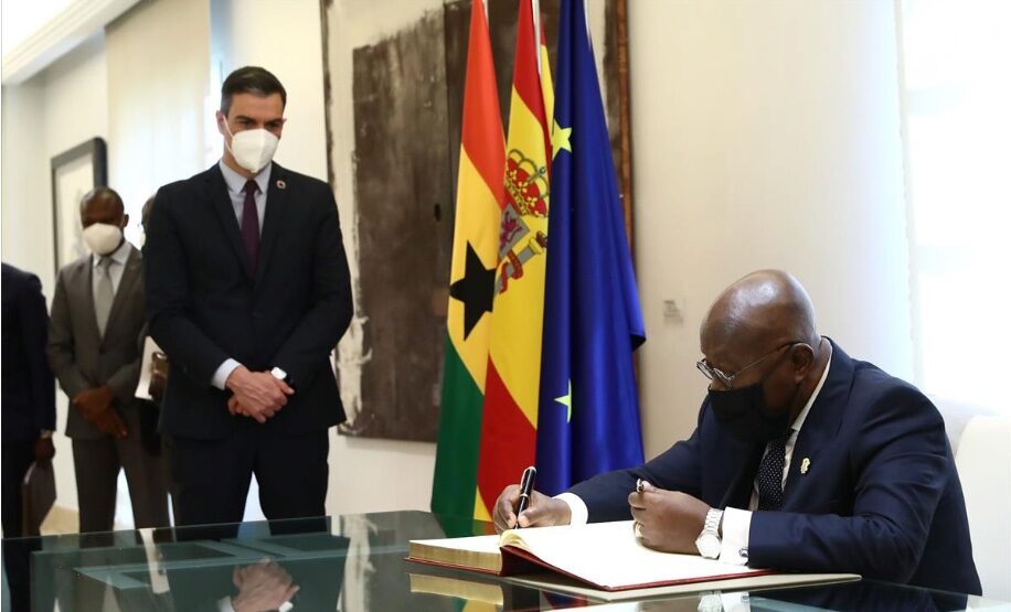 Pues bien, el encuentro tuvo una cita previa: la del propio Pedro Sánchez con el presidente de la República de Ghana con motivo de la presentación de ese mismo Foco África 2023. La reunión de Sánchez tuvo lugar el 29 de marzo de 2021. "El presidente del Gobierno, Pedro Sánchez, recibe al presidente de la República de Ghana, Nana Akufo-Addo", justo cuando se cerraban las ayudas que pagaría España a cada país africano con motivo, precisamente, de este plan y metiendo a Ghana en el capítulo de principales objetivos de ayuda "económica" y de apoyo en el "empoderamiento de la mujer".