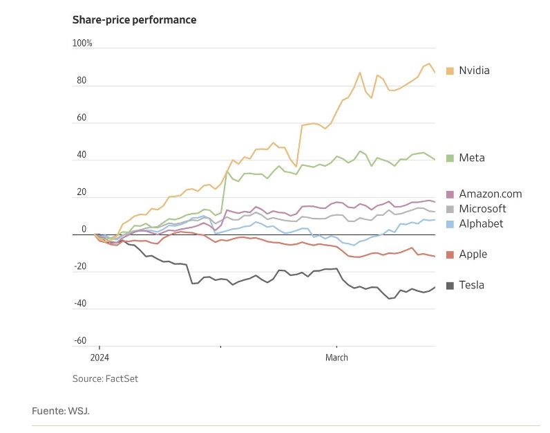 Que a cierre del primer trimestre del año Tesla haya retrocedido un 33% ha sido suficiente como para que se caiga del grupo de las llamada 7 magníficas. Las siete compañías, tecnológicas todas, que capitanean las subidas en el S&P 500 en EEU: Amazon, Facebook, Google, Nvidia, Apple, Netflix y Tesla. Además, Tesla es una de esas compañías que despierta admiración y rechazo a partes iguales, quizá por la excentricidad de su creador y CEO, Elon Musk (genio para muchos, chiflado para otros tantos) o por ser la compañía que más ha apostado hasta la fecha por los coches eléctricos y autónomos.