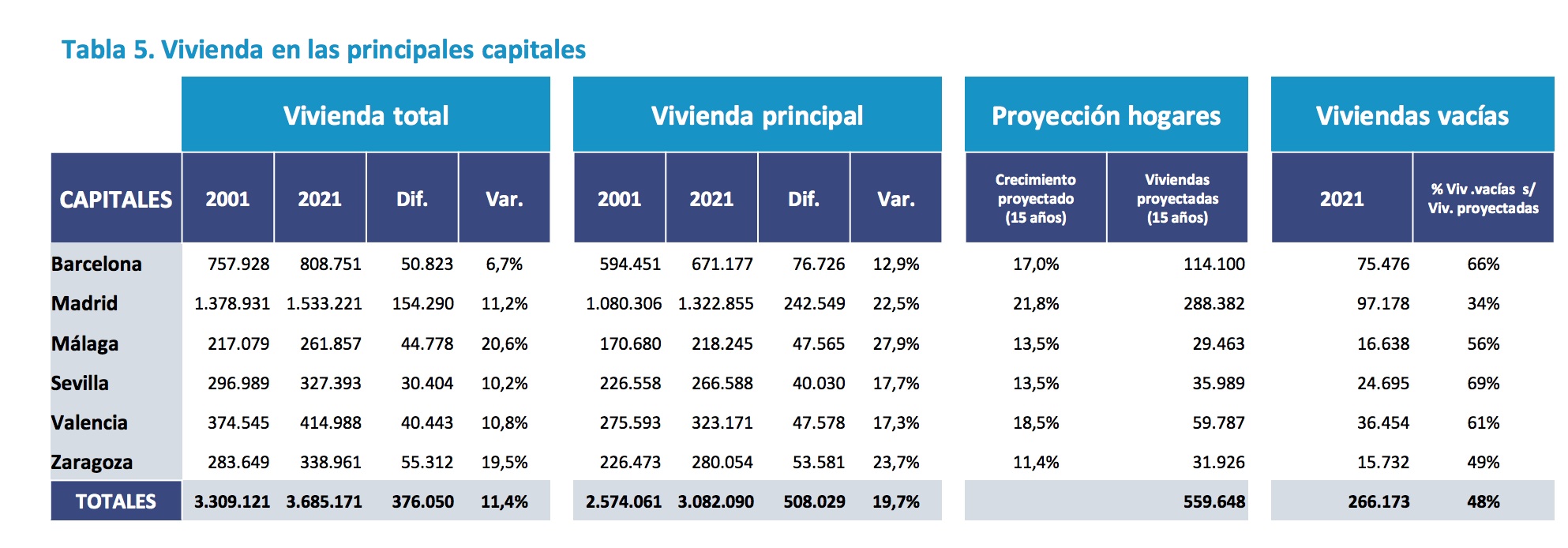 En el caso de las capitales, como Madrid o Barcelona a las que mencionan Maestre o Bollain, Tinsa cree que "estas viviendas vacías están bloqueadas por algún motivo, ya sea por condiciones de inhabitabilidad, procesos jurídicos asociados o, simplemente, porque sus propietarios las mantienen fuera del mercado (generalmente por causas de fuerza mayor, pues no suele compensar tener una vivienda inutilizada). Así, su movilización a corto plazo no es clara".