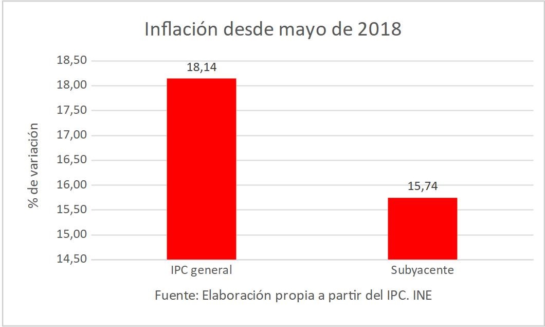 Todo ello, hace que desde que gobierna Sánchez la inflación haya subido un 18,14%, mientras que la subyacente, durante su mandato, lo haya hecho un 15,74%.
