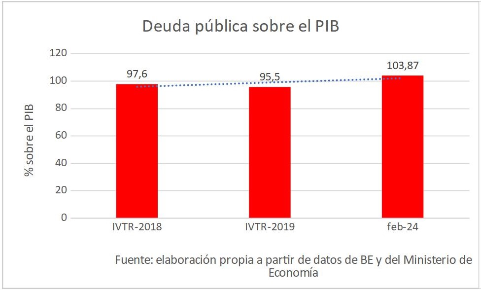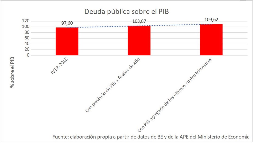 Sobre los datos de PIB agregados de los últimos cuatro trimestres, el porcentaje se eleva al 109,6%.