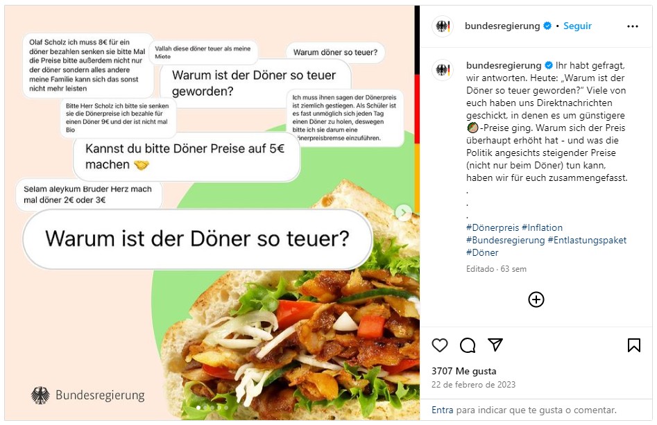 Eso sí, en el caso alemán, los empresarios no perderían dinero porque la diferencia del precio de mercado del kebab la pagaría el Estado. Tal es la repercusión que está teniendo el precio de este producto, que hasta el año pasado el Gobierno alemán tuvo que explicar en una infografía por qué realmente sube su precio.